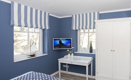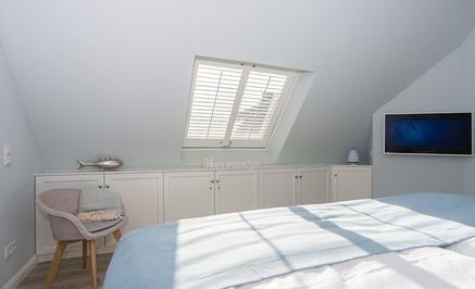 Mittelpunkt im großen Schlafzimmer ist das bequeme Doppelbett mit Wohlfühlgarantie und ganz vielen Kissen, in dem Sie nicht nur hervorragend Schlafen, sondern auch Himmel, Sterne, Wolken und Möwen beobachten können. Genießen Sie auf der Terrasse mit Blick auf die Dünen einen Sun Downer oder einfach nur eine frische Brise mit dem unbeschreiblichen Klang des Meeresrauschens…